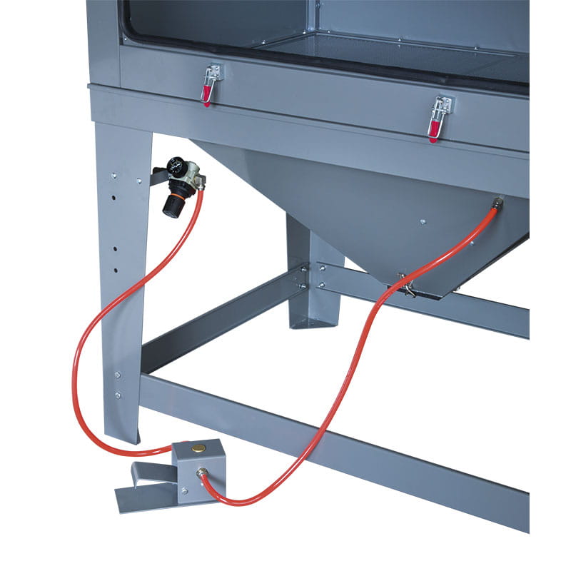 - Wysokość 450 mm — wysoka komora umożliwia piaskowanie elementów trójwymiarowych bez obracania
