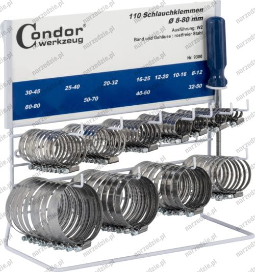 • 9300/80 - Zakres mocowania 60 - 80 mm, szerokość taśmy - 12 mm