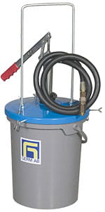 Pompa uzupełniająca z rączką do przenoszenia i plastikowym wiekiem do systemów centralnego smarowania wykonana dla plastikowych i stalowych zasobników 16-20 kg z wiekiem Ø 300-335 mm . Podaje 80 gram/ruch 1,5 m 3/4"-przewód z szybkozłączką standardową stosowaną w rolnictwie z zaworem zwrotnym i adapterem gwint zew. G1/4". Rura pompy Ø 40 mm. Przystosowana do smaru typu NLGI 00-2.