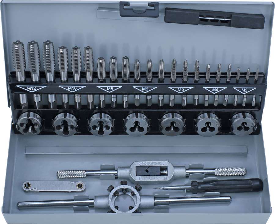 - gwintowniki ręczne 3 sztukowe: M3, M4, M5, M6, M8, M10, M12,