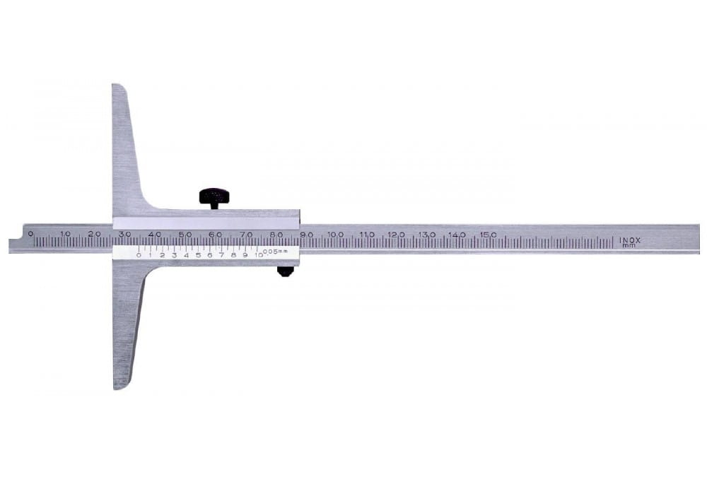 Ze stali nierdzewnej. Podziałka chromowana na mat. Zakończenia liniału i poprzeczki są hartowane. Podziałka w mm z noniuszem 1/20 mm. Z zaciskiem ustalającym. Tolerancja wg DIN 862.