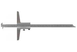 Ze stali nierdzewnej. Podziałka chromowana na mat. Liniał odwracany do pomiarów z końcówką hakową lub prostą. Podziałka w mm. Noniusz 0.05 mm. Tolerancja wg DIN 862.