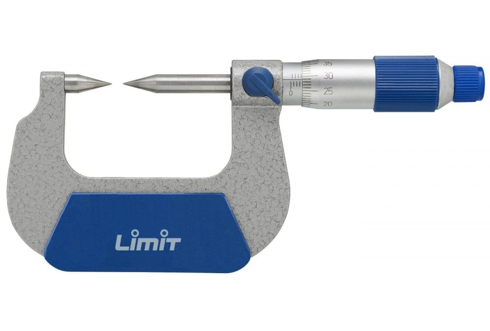 Kabłąk odkuwany, z podziałką matową. Wrzeciono hartowane 6.5 mm, ze stożkowymi końcówkami pomiarowymi. Z pokrętłem sprzęgła i dźwigienką ustalającą. DIN 863.