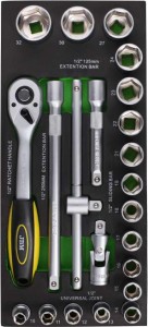 - nasadki 6-kątne: 10, 11, 12, 13, 14, 15, 16, 17, 18, 19, 21, 22, 23, 24, 27, 30, 32 mm.