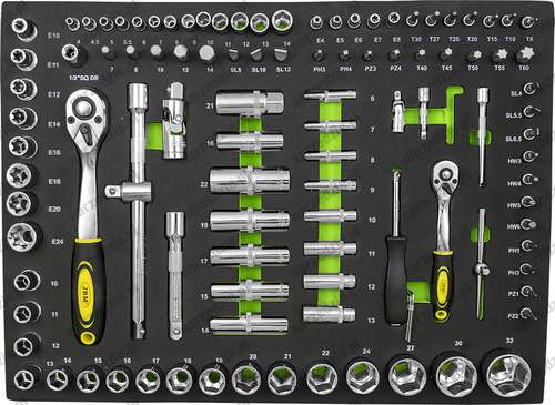 - nasadki 6-kątne: 10, 11, 12, 13, 14, 15, 16, 17, 18, 19, 20, 21, 22, 24, 27, 30, 32 mm,