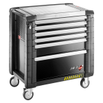 - Wyposażone w system blokady wewnętrznej SAFETY LOCK SYSTEM, który zapobiega równoczesnemu otwarciu kilku szuflad: – otwiera się 1 szuflada naraz; – eliminacja ryzyka przewrócenia się wózka. 6 szuflad = 20 modułów rozłożonych w szufladach 60 i 130 mm: – 4 szuflady 60 mm = 16 modułów; – 1 szuflada 130 mm = 4 moduły; – 1 szuflada 270 mm. Szuflady 200 i 270 mm także można wyposażyć w moduły. Wyposażone w 9 przegródek do szuflad 60 mm i 3 przegródki do szuflad 130 mm.
